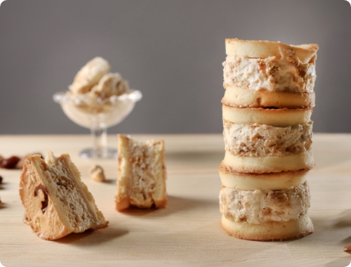 とろける新食感スイーツしっとり、ふわっと焼き上げたカトルカール生地で、とろけるNOUGAT℃【ヌガード】をサンド。口の中で広がるキャラメルの甘さと、クラッシュアーモンドの食感がクセになるおいしさです。